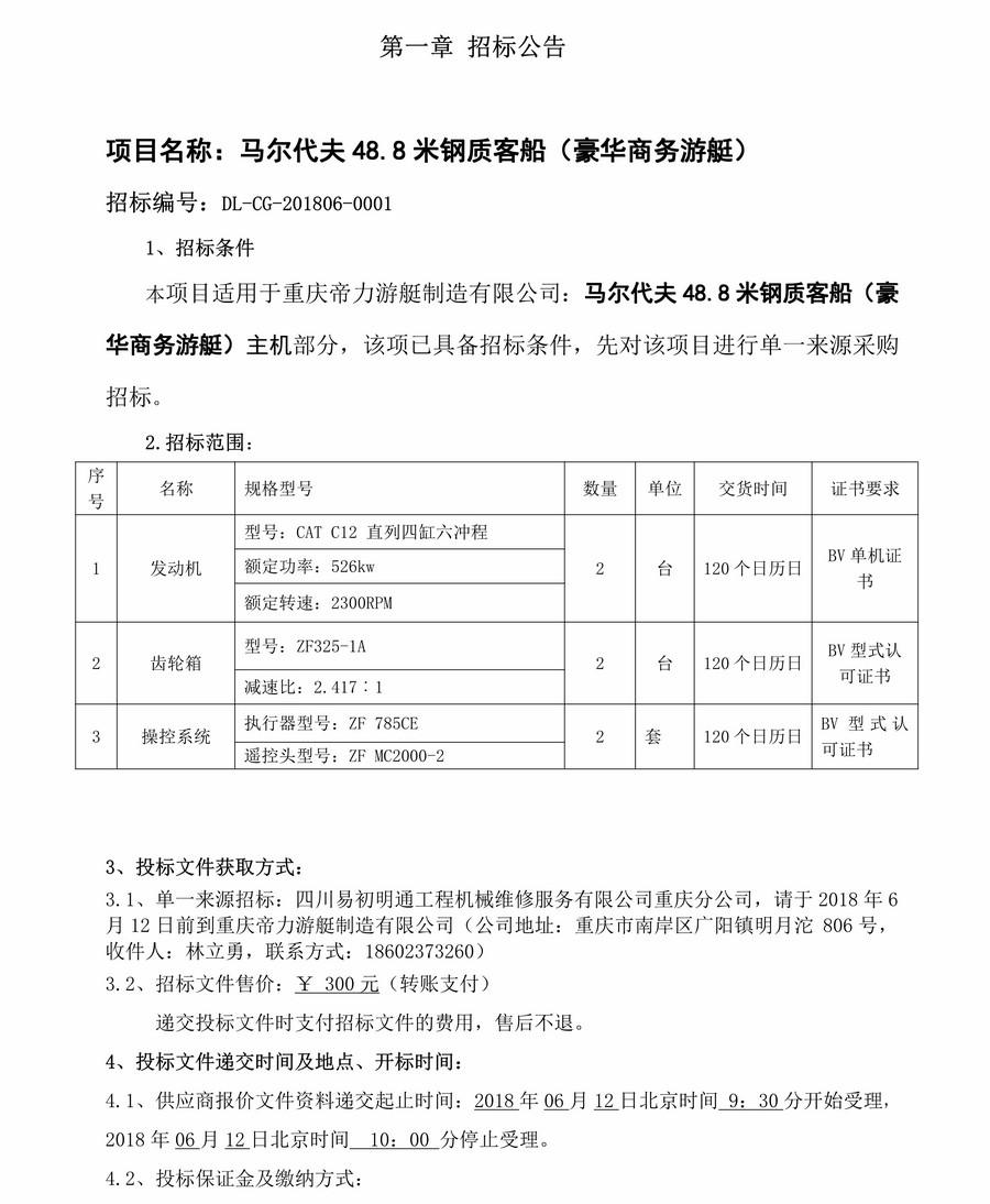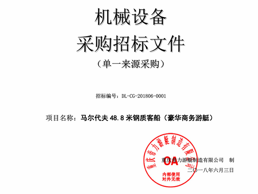 馬爾代夫48.8米鋼制客船(豪華商務游艇)機械設備采購招標