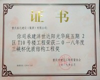 ? 2019年5月,洋世達陽光華庭五期2區T10號樓工程榮獲重慶市建筑工程質量協會頒發的“二O一八年度三峽杯優質結構工程獎”